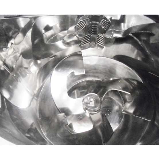 高速混合机首先使用叶轮在碗中混合粉末。